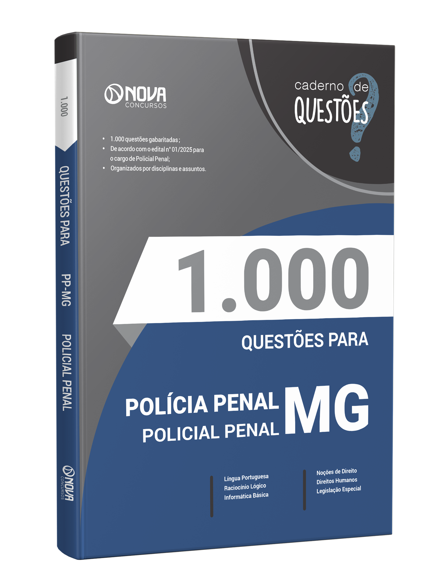 O caderno 1.000 Questões Gabaritadas para a Polícia Penal de Minas Gerais - Policial Penal tem padrão de livro, capa resistente, é muito bem elaborado e se apresenta como um material indispensável à sua preparação no concurso.