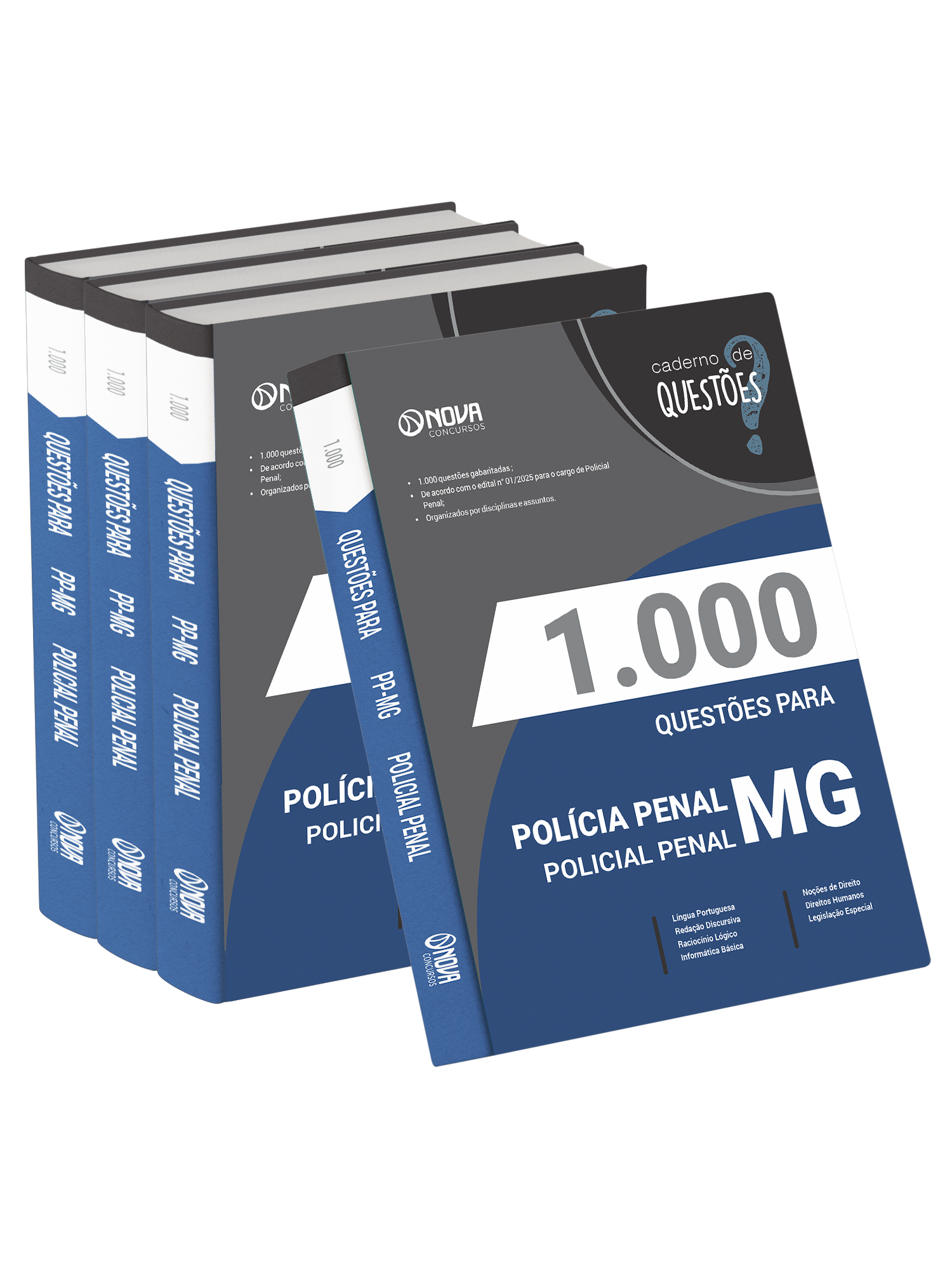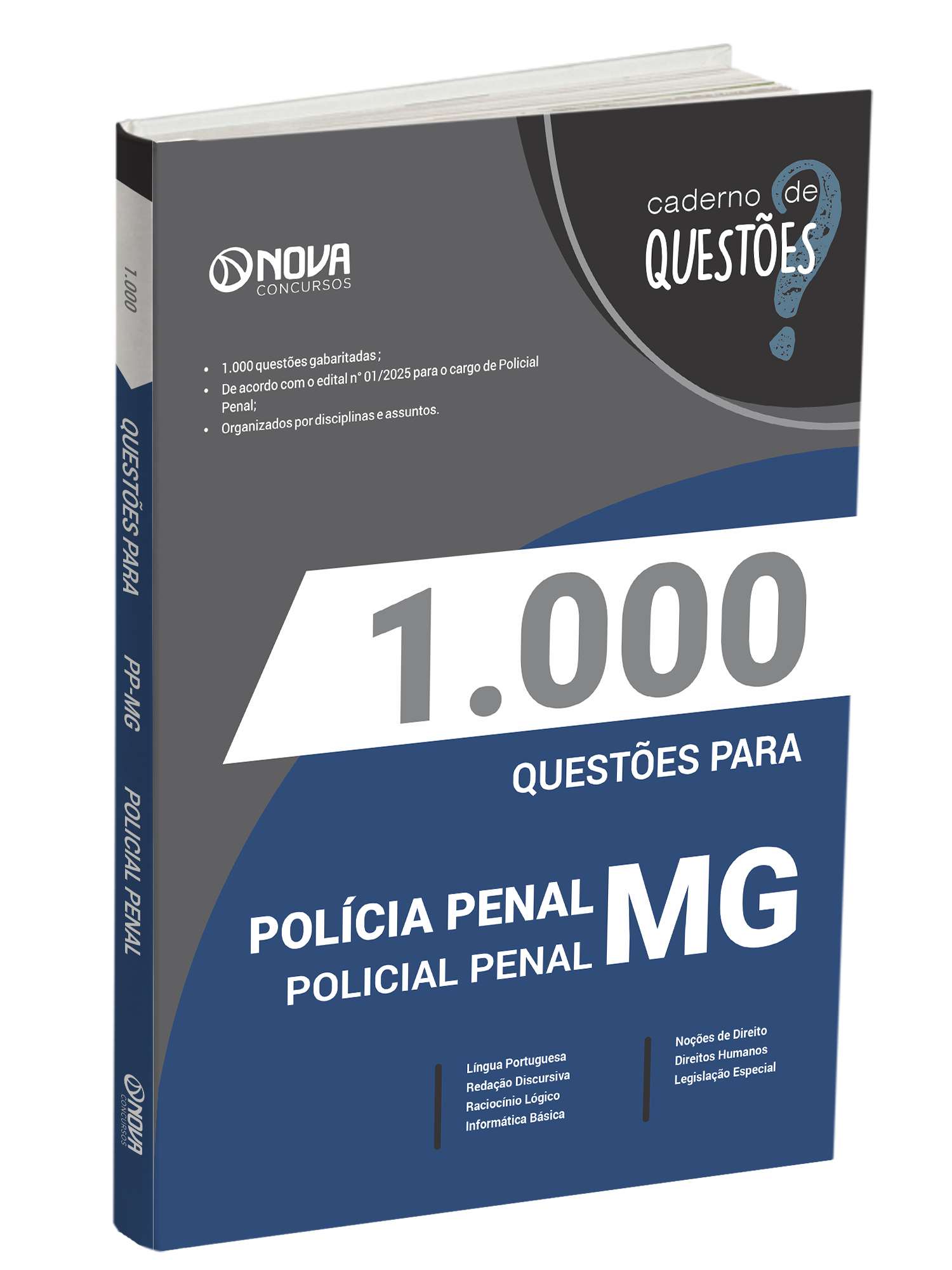 O caderno 1.000 Questões Gabaritadas para a Polícia Penal de Minas Gerais - Policial Penal tem padrão de livro, capa resistente, é muito bem elaborado e se apresenta como um material indispensável à sua preparação no concurso.
