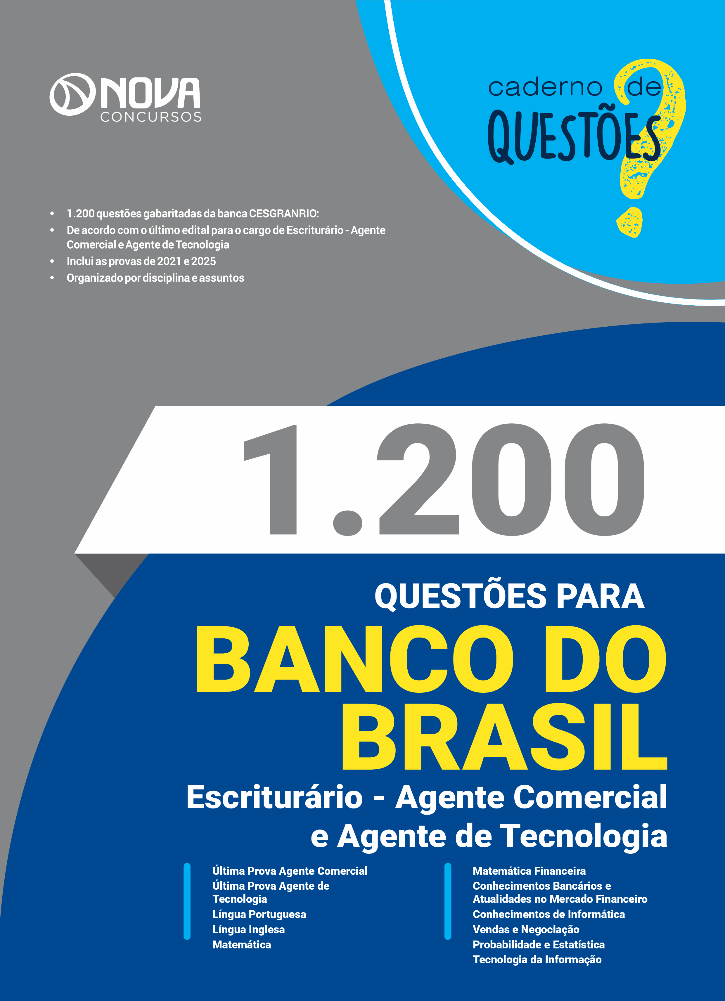 Livro 1.200 Questões Gabaritadas para o Banco do Brasil 2026 em PDF - Escriturário - Agente Comercial e Agente de Tecnologia
