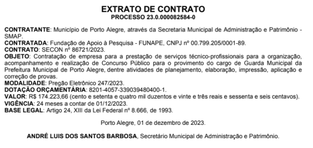 No dia 05 de dezembro, por meio de extrato de contrato, a FUNAPE foi definida como banca organizadora do aguardado concurso para a Guarda Municipal de Porto Alegre!
