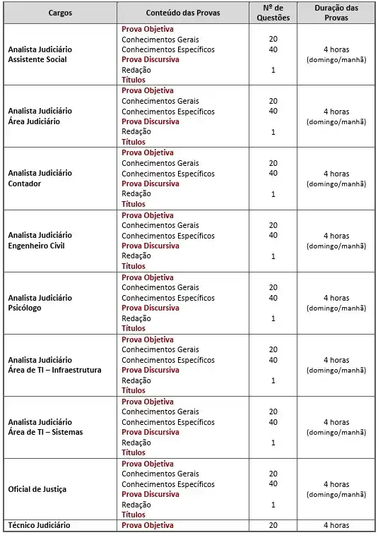Quanto aos requisitos, o cargo de Técnico Judiciário exigirá nível médio de escolaridade, enquanto as funções de Analista Judiciário e Oficial de Justiça demandarão formação de nível superior.
