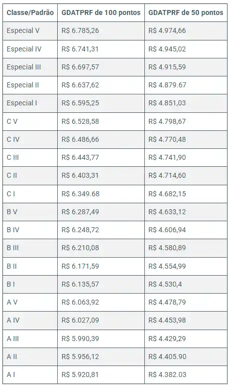 - R$ 4.382,03 (GDATPRF de 50 pontos)